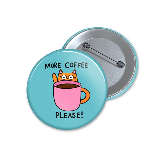 More Coffee - Button Pin Badge - Cat Quote Pin, Funny Gifts