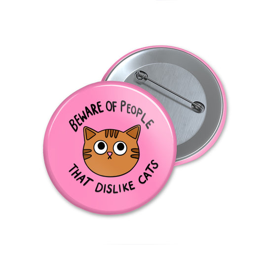 Beware Of People - Button Pin Badge - Cat Quote Pin, Funny Gifts