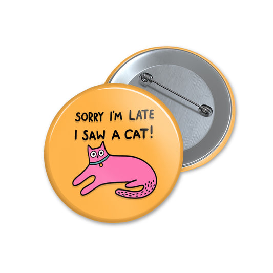 Sorry I'm Late - Button Pin Badge - Cat Quote Pin, Funny Gifts