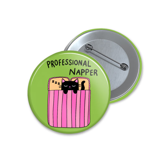 Professional Napper - Button Pin Badge - Cat Quote Pin, Funny Gifts