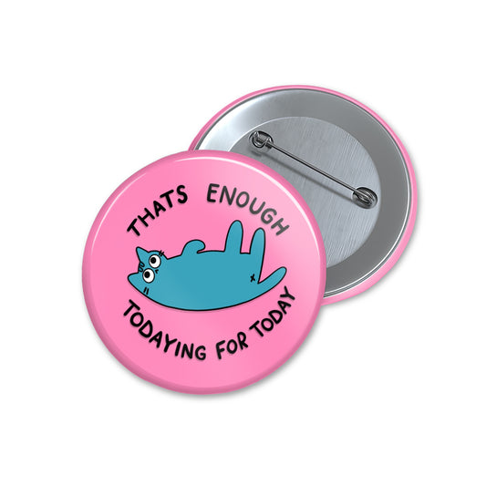Enough Todaying - Button Pin Badge - Cat Quote Pin, Funny Gifts