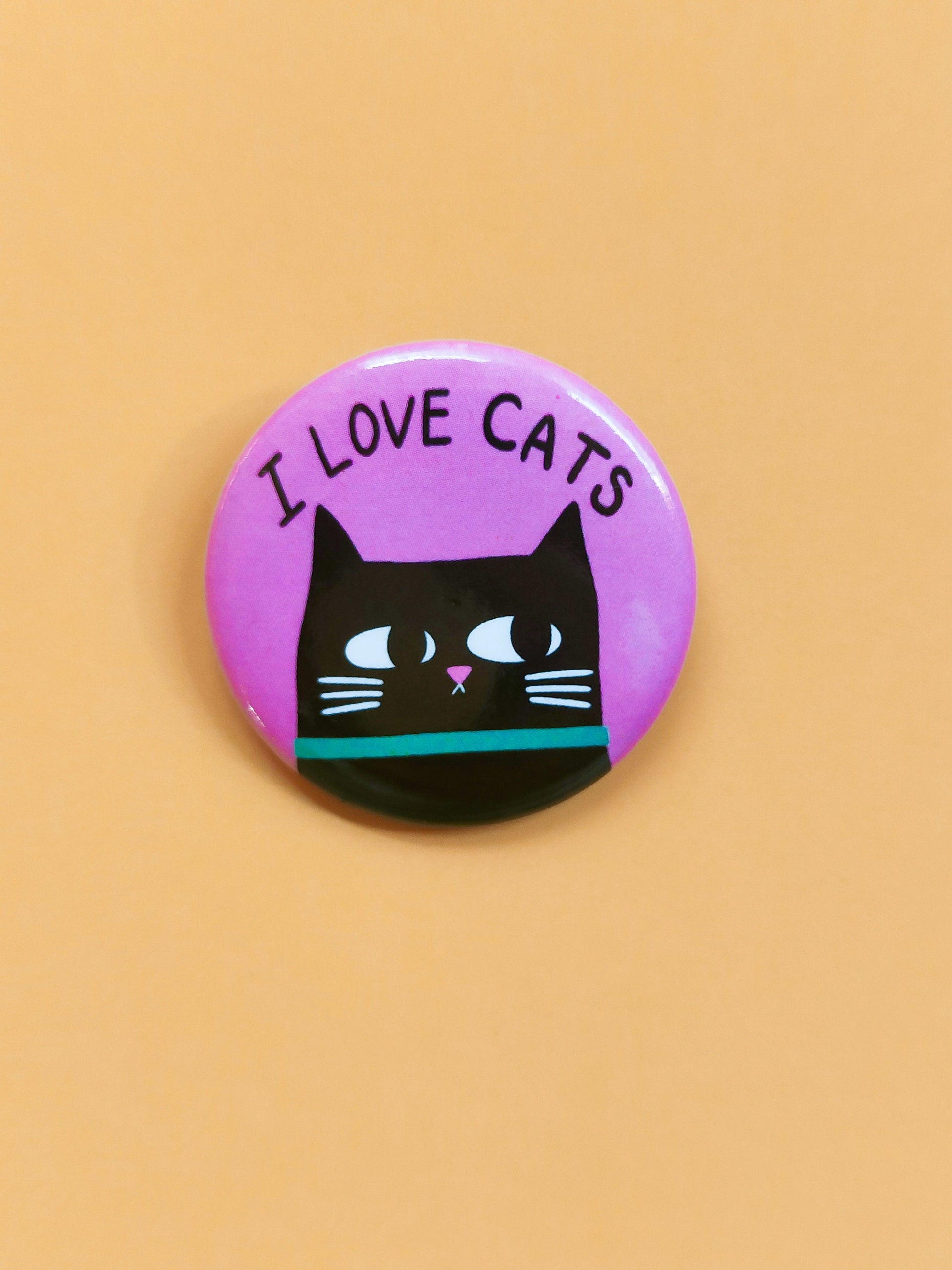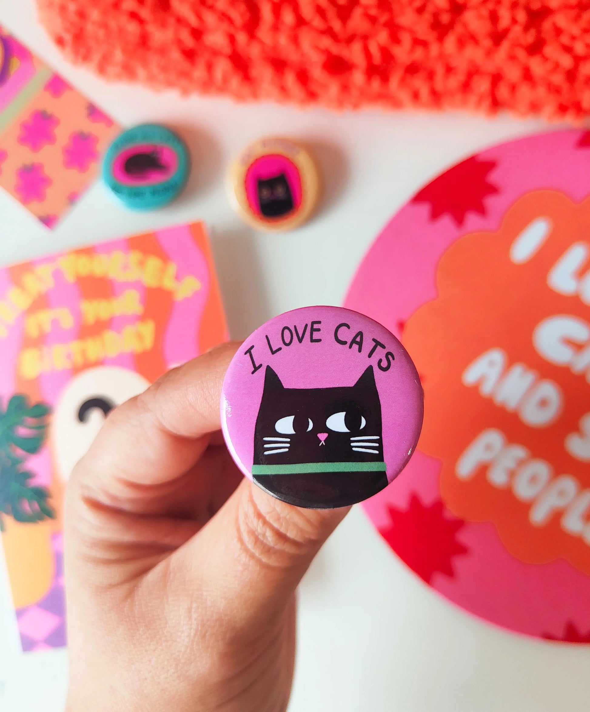 I Love Cats - Button Pin Badge - Black Cats, Funny Gifts