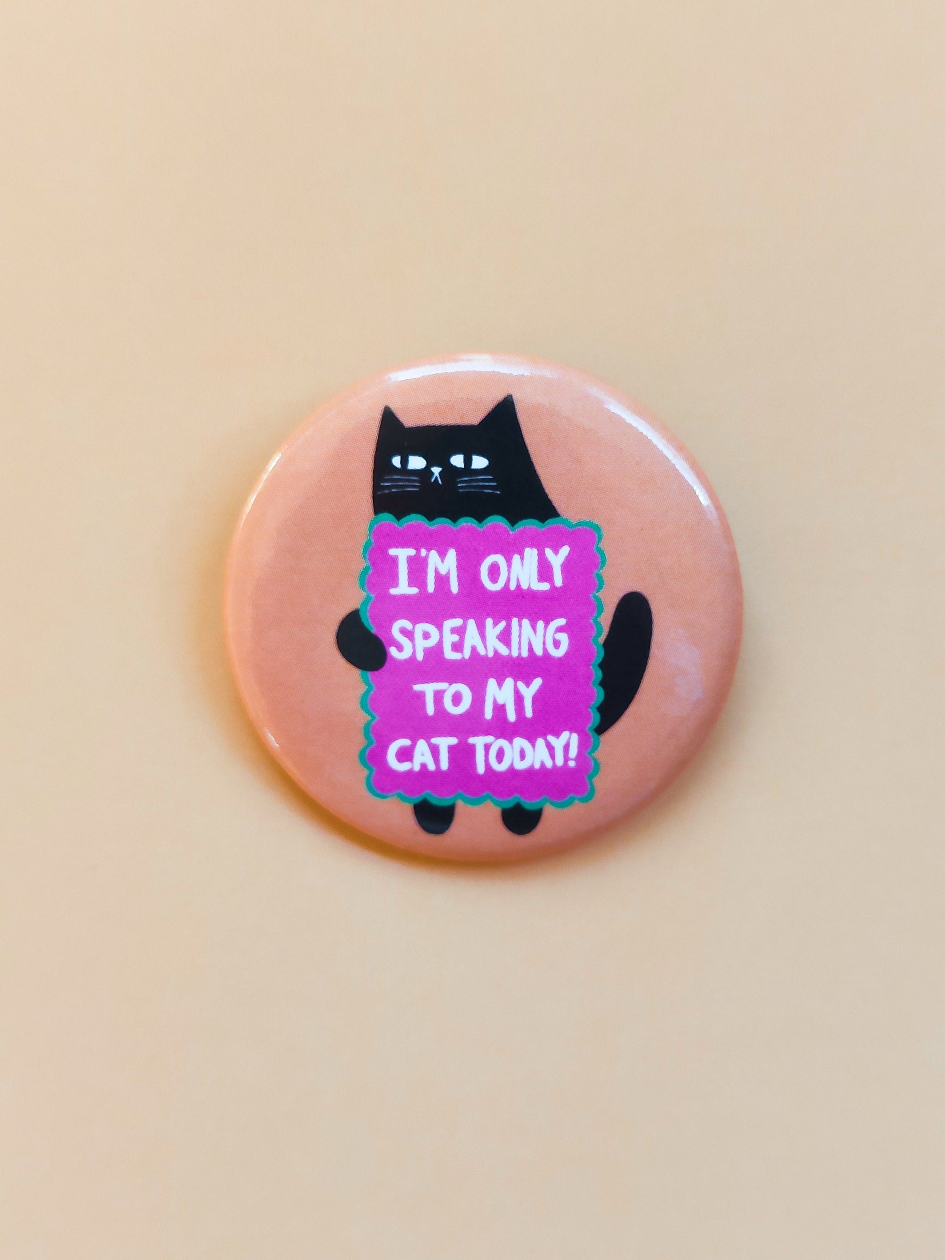 Only Speaking To My Cat - Button Pin Badge - Funny Feline Gift, Black Cats, Funny Pins (38mm)